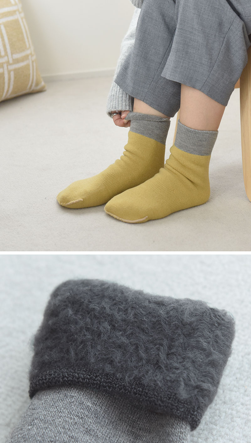 そんな冷え性さんの味方ルームソックスを、bon moment(ボンモマン)のオリジナルカラーで作っていただいたのがコチラ。濃密な起毛感ともちもちの厚手クッション感で、寒い季節のおうち時間の足元を温もりと気持ち良さで包みます。
