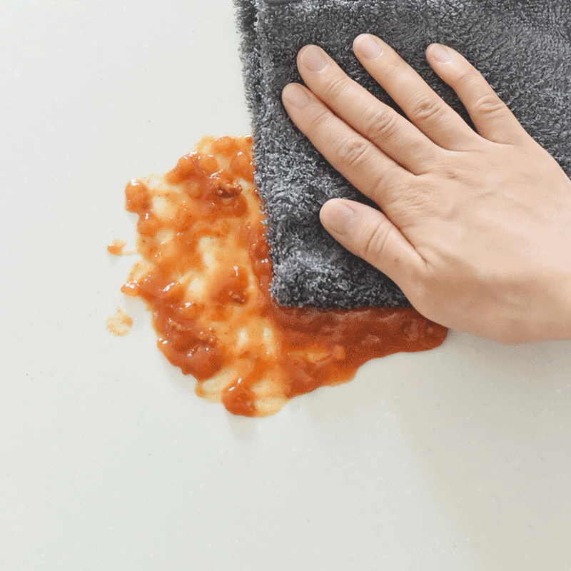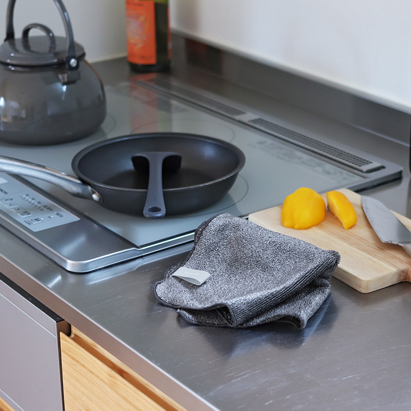 揚げ物、炒め物後の油汚れが、水拭きだけでスルっと落ちる不思議なクロス。お料理の後のお掃除も、水だけで簡単&気軽に行えます。