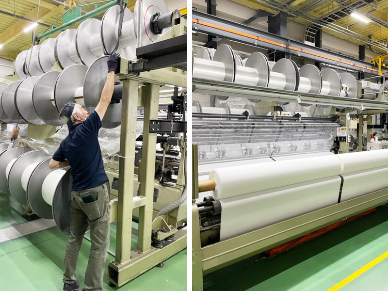 古くから織物生地の産地として栄えてきた、高野山の麓、和歌山県橋本市高野口町で製造。創業70年以上の繊維メーカーで、職人の手作業と機械によって丁寧につくられています。