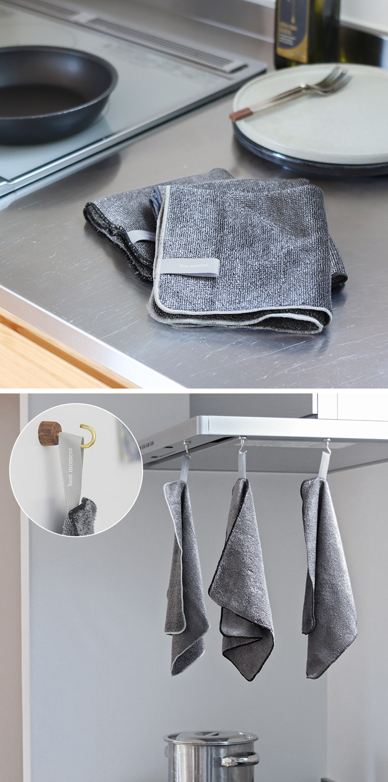 シンプルなのでループを引っかけて乾かしておく時も、キッチンに馴染むデザインです。