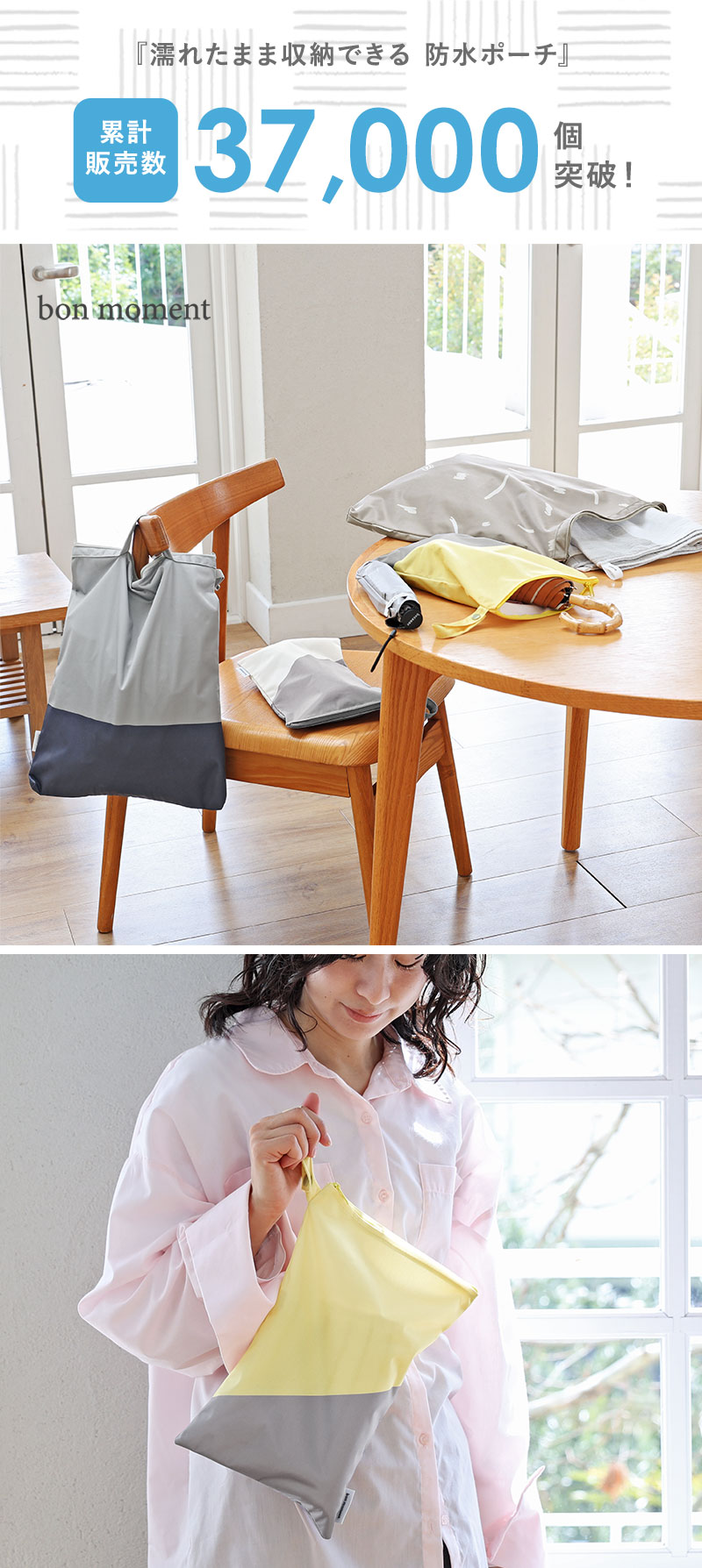 ジムやヨガの行き帰り、汗をかいて汚れたウェアや靴下などのセットをまるっと入れて持ち運べる、bon moment(ボンモマン)「濡れたまま収納できる 防水ポーチ」。日常使いはもちろん、温泉やプールなどのお出かけシーンにも活躍してくれるアイテムです。