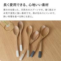 木目がはっきりとした美しい見た目と、持ち手に施したアクセントカラーの塗りで、食卓をやさしげに演出。時間と共に色合いが深くなっていく経年変化も楽しめて、使うほどに愛着のわくスプーンです。
