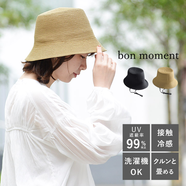 バケツを逆さにしたようなフォルムで、トレンドアイテムとしても人気の「バケットハット」。bon momentのこちらは清涼感のあるブレード素材を使い、すっきりシンプルなデザインで作りました。