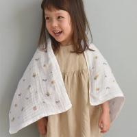ベビーのお肌にも優しい、ふんわり4重ガーゼ素材を使用。一般的な80cm前後のフェイスタオルより少し長め。濡れた髪をまとめる時も頭に巻きやすくなっています。