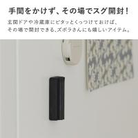 玄関のドアや冷蔵庫にピタっとくっつけておけば、ハサミやカッターをいちいち用意しなくても、その場で開封ができるアイテム。