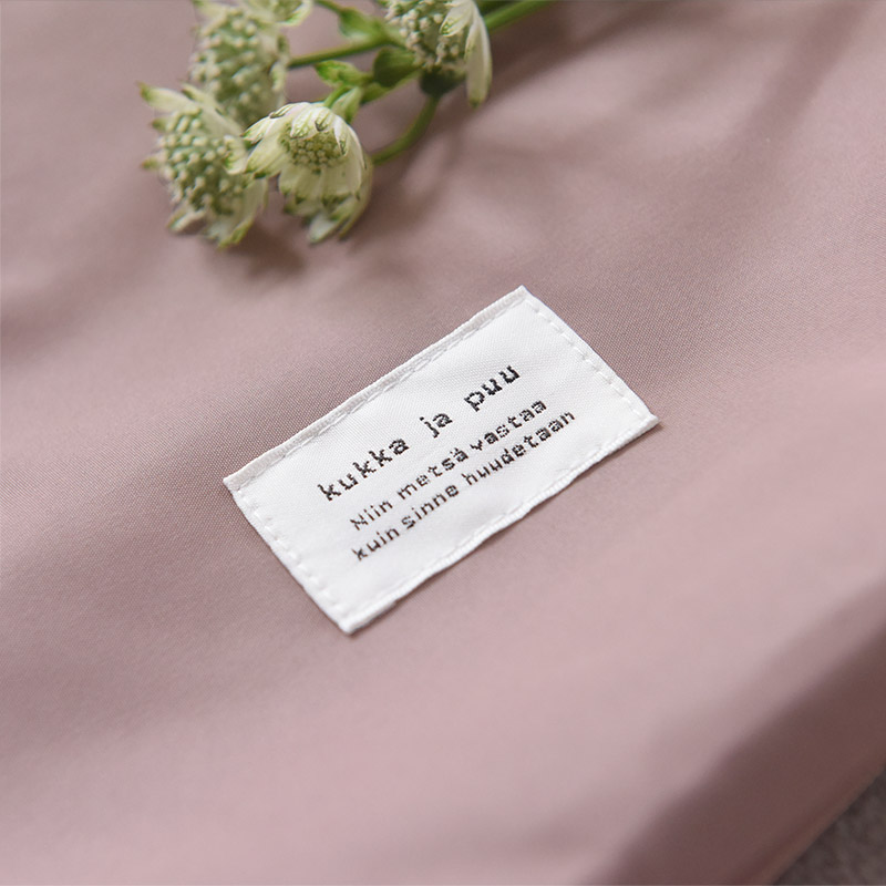 Point3:ブランドタグのアクセント正面には、「花と木のようにすくすく元気に育ってほしい」と願いを込めた「kukka ja puu」のタグを。