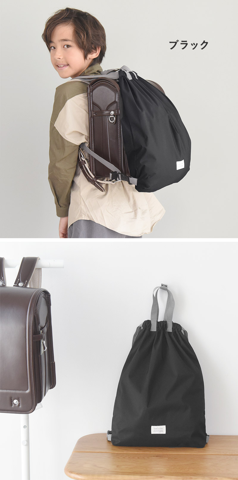 ブラックの本体にライトグレーの紐。高学年になっても使いやすい定番カラーです。
