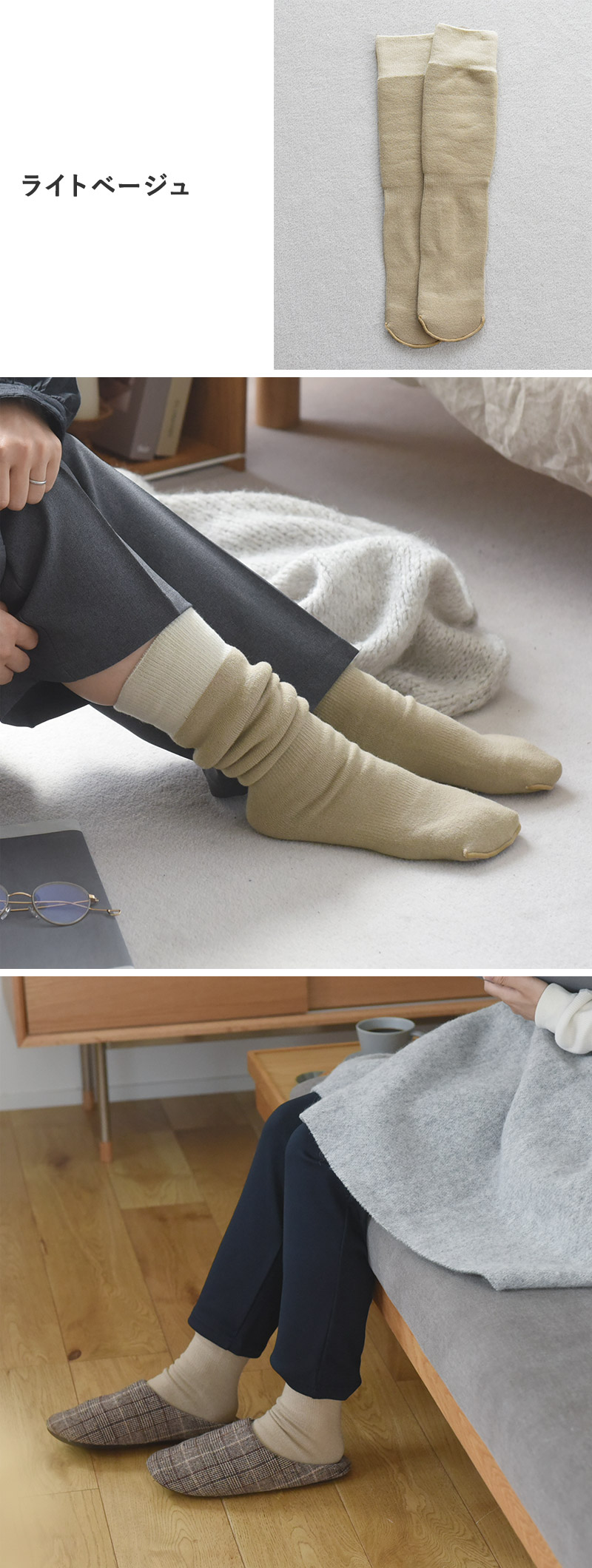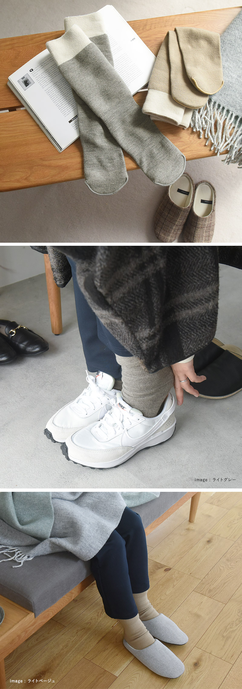 おうちのぬくぬく感のまま、外にもさっと出掛けられる、寒さ知らずのもちっと極暖ハイソックスです