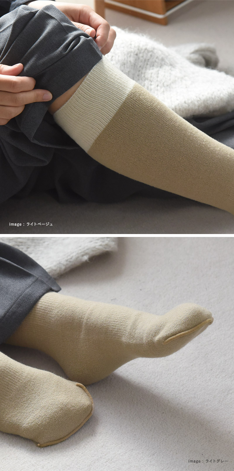 よく伸びて暖かいとご好評のもちはだ®ソックスから、アンジェ限定のNEWタイプが登場。冷え性さんも嬉しいハイソックスで暖かさ抜群、靴やスリッパが履きやすいように厚みも調整しました。