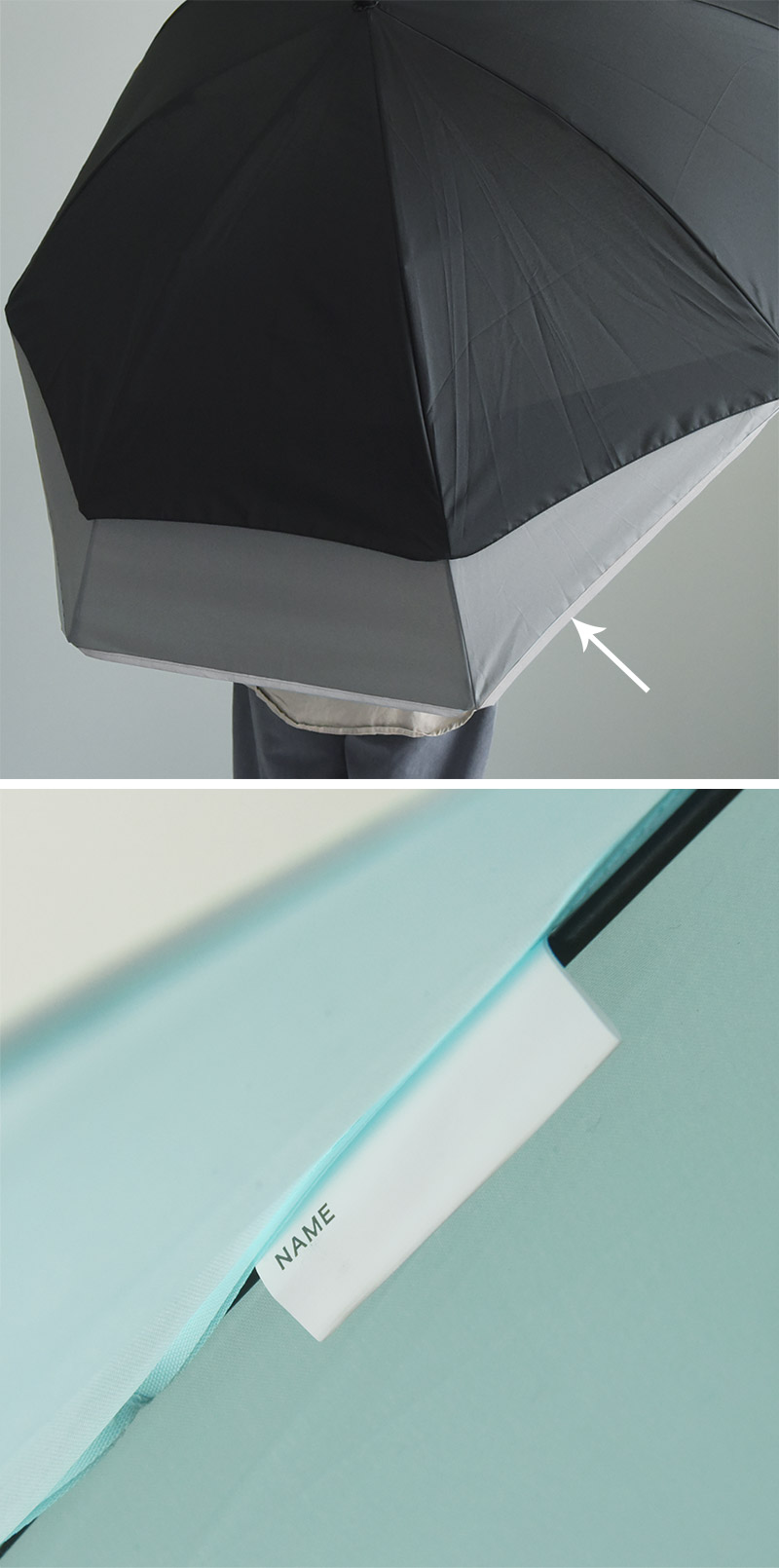 また、一目で正面が分かるので、気づいたら傘が回っていて後ろが濡れてしまうといったことも防げます。