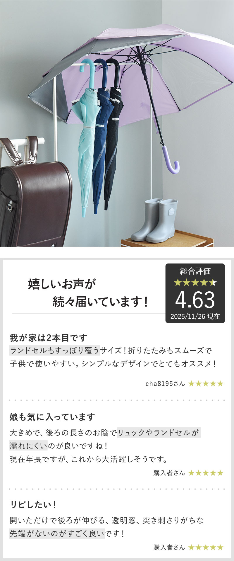 ★4.63の好評価キッズ傘に
