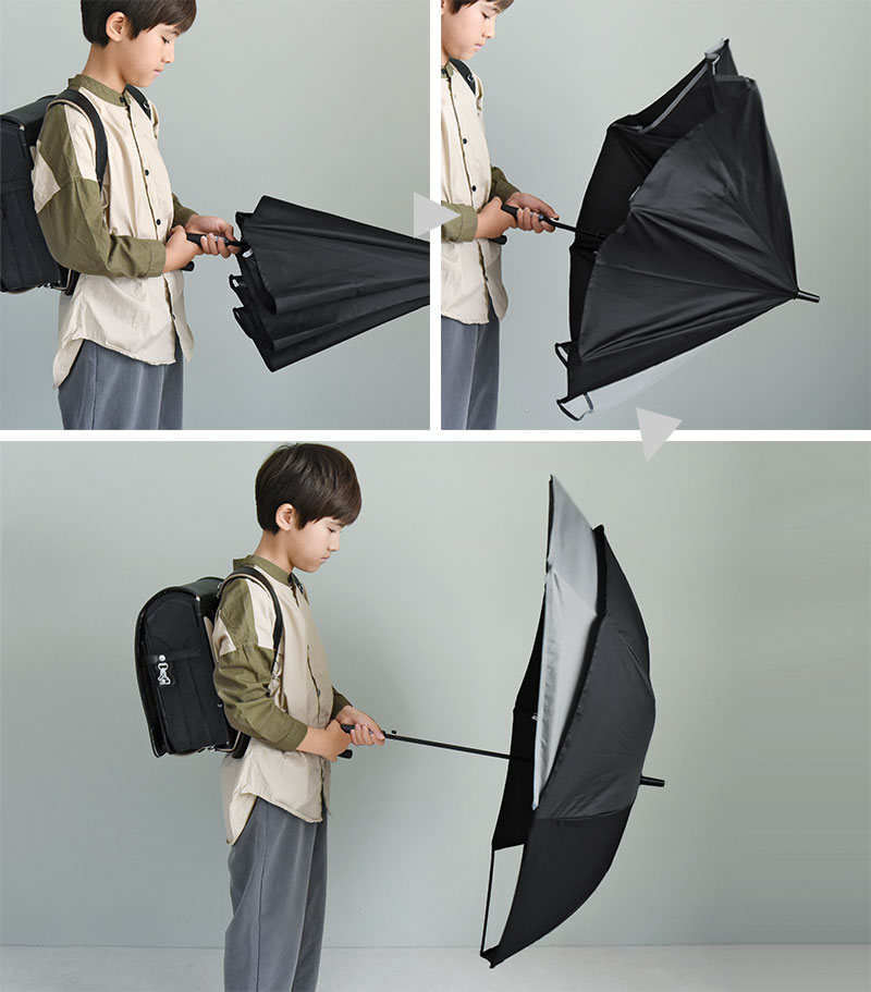 雨の日の登下校、傘や長靴で頭と足は守れても、ランドセルはびちゃびちゃ…。そんな小学生キッズたちには、後ろが伸びるトランスフォーム傘があると快適です。