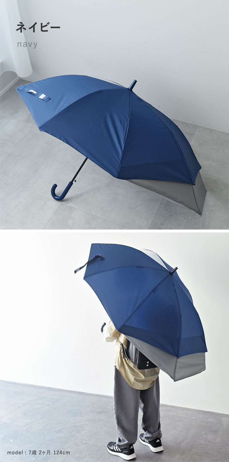 傘の生地は明るめのブルーに近いネイビー。