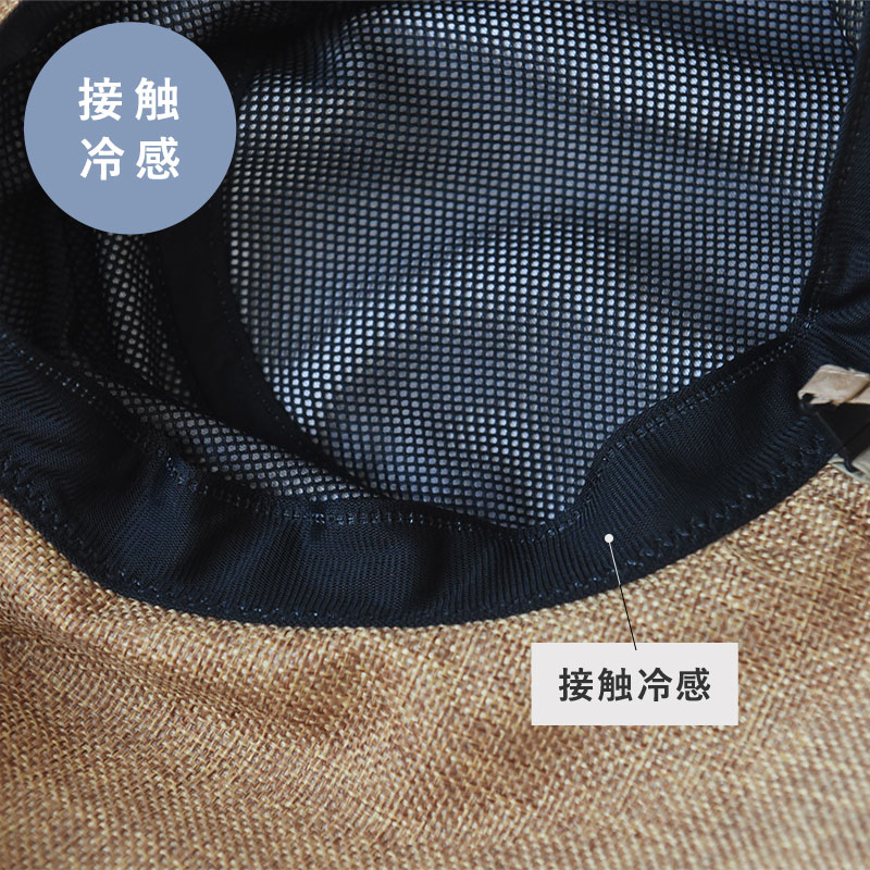 頭にあたるハットの内側(ビン皮)に、接触冷感素材を使用。暑い日のお出かけに、ちょっとした安心をプラスしてくれます。