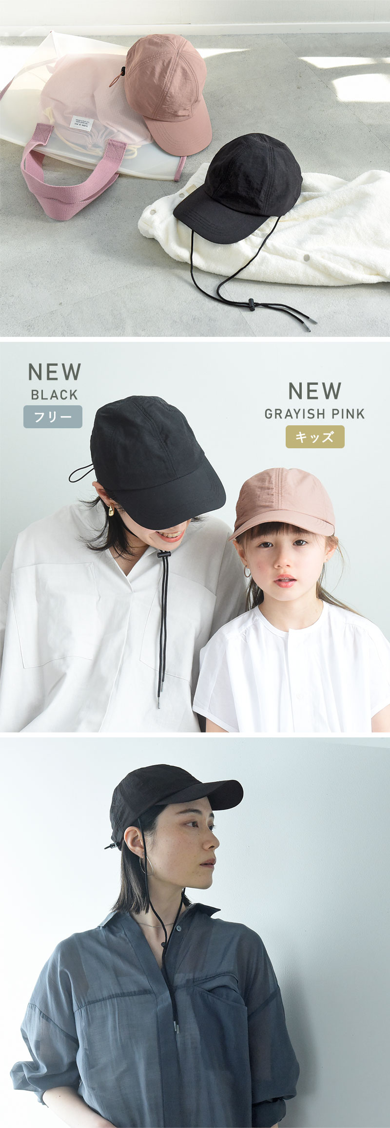 キッズサイズにグレイッシュピンク、フリーサイズにはブラックが登場しました。各サイズ選べる3色、どれも落ち着きのある色合いです。