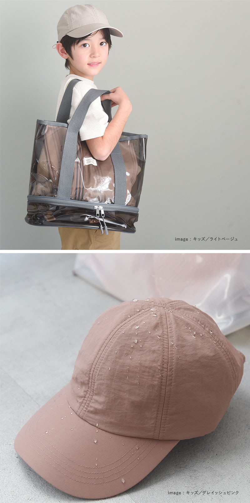 プールや海に、公園のじゃぶじゃぶ池。夏のレジャーを大満喫するためにも、帽子は欠かせないアイテム。こちらは、日差しから頭を守るだけでなく、水対策もばっちりな「撥水キャップ」です。