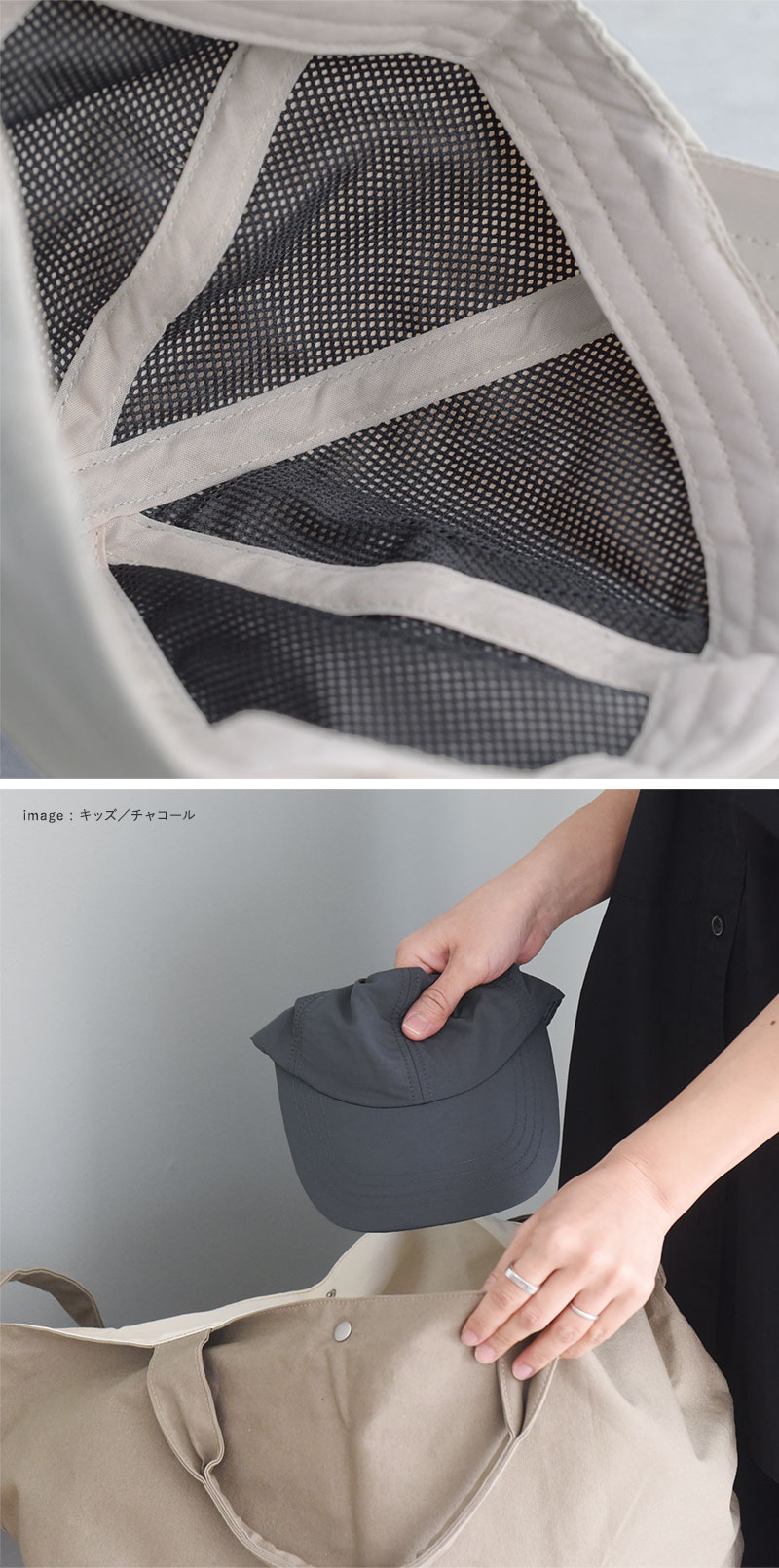 また、つば部分以外は柔らかな素材で畳みやすく、シワを気にせずコンパクトに持ち歩けます。