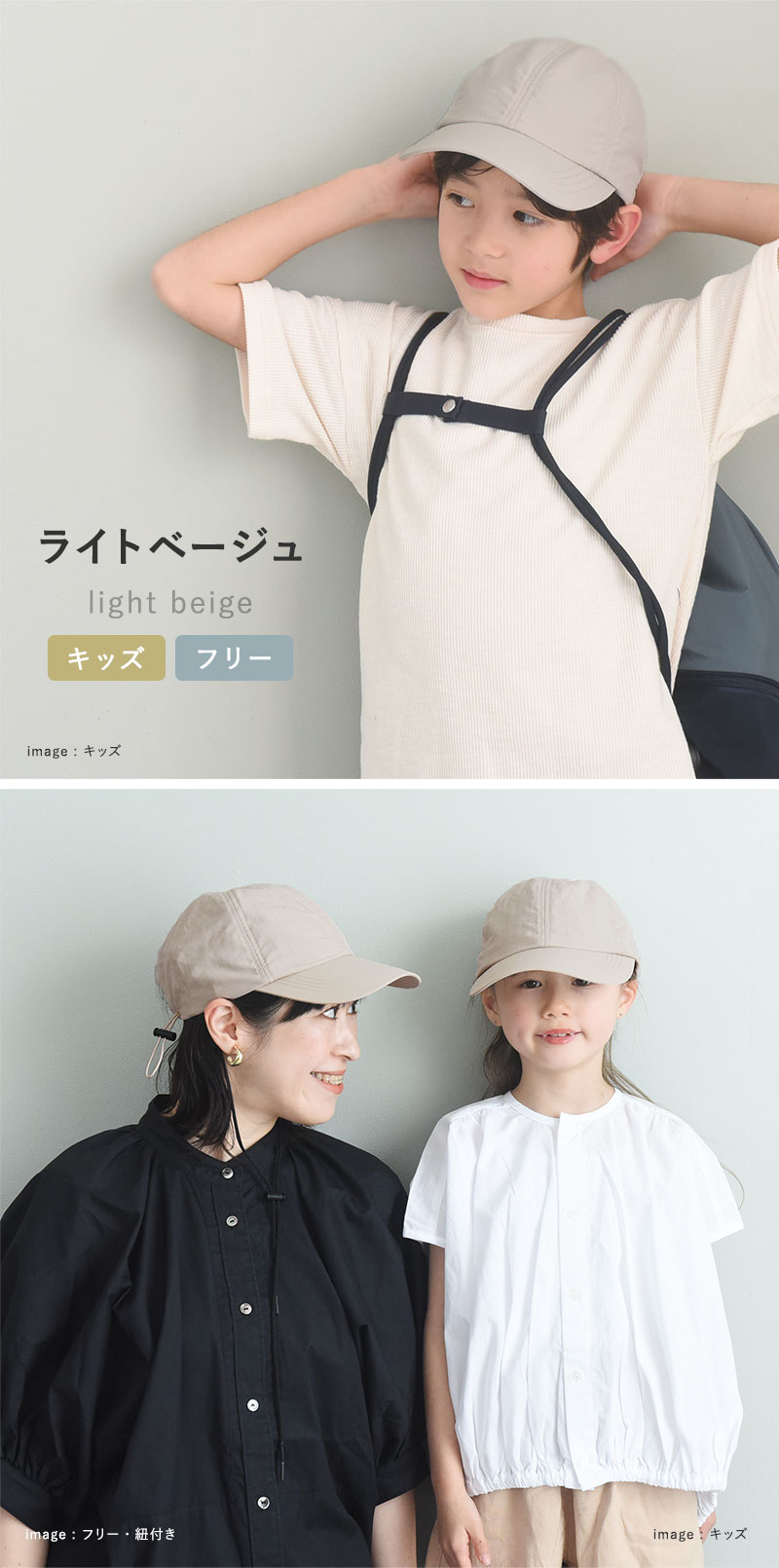 シンプルなデザインだから、レジャーに限らず登下校時など普段使いにもぴったり。キッズ用とフリーサイズの2サイズ展開で、親子リンクも楽しめます。