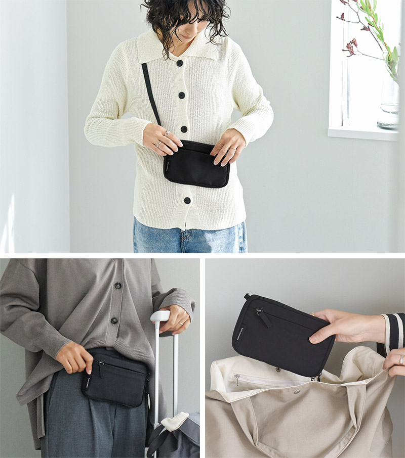 海外旅行では安全性重視で服の下に着用。国内旅行ではショルダーとしてもお使いいただける、デザイン性も追求しました。