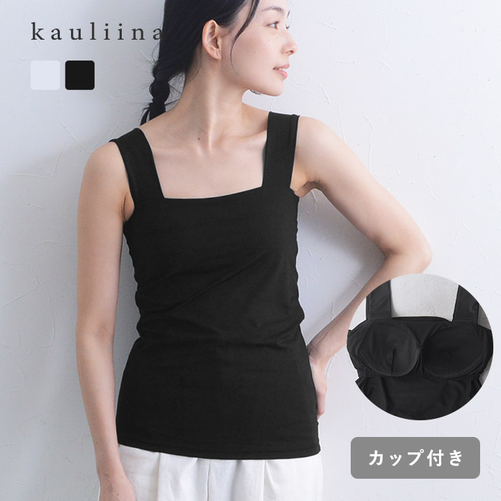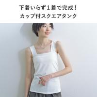 胸元や脇下にピタッと寄り添い、からだや下着のチラ見えを防いでくれる「スクエアタンクトップ」の、新たにカップ付タンク(ブラタンク)タイプが仲間入り!