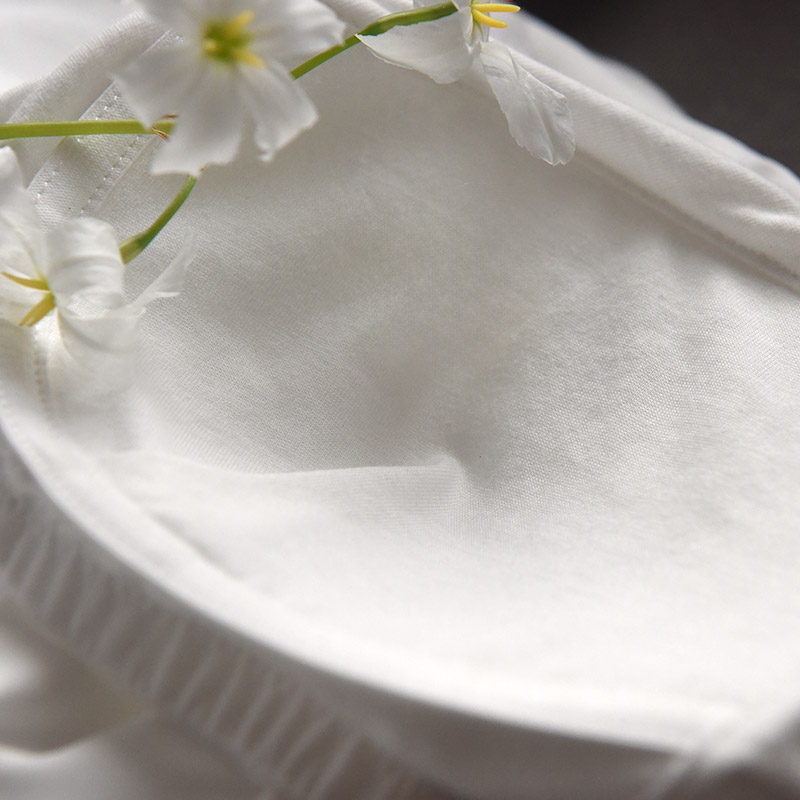 ノンワイヤーでも安心の着心地バストに寄り添うように、アンダー部分を背中までゴムでぐるりと一周縫い付けることで、フィット感を高め、ふんわりバストを支えています。