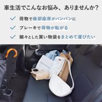 買ったものをポンポン収納前の座席と後部座席のヘッドレストに引っ掛けるだけで設置完了。買ったものをどんどん入れれば車内がすっきり。ブレーキをかけた時に荷物が転がるのも防ぎます。