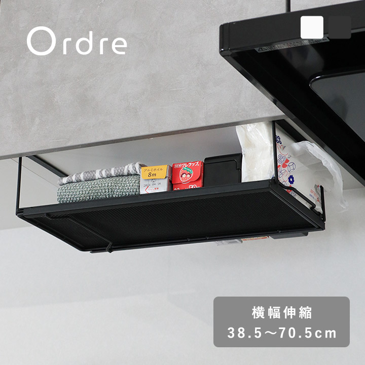 | 商品詳細 | | 戸棚下にプラスワン、伸びて吊るせる収納ラックが登場しました。玄関や洗面所、台所などの戸棚下に吊るすだけで新たな収納スペースを確保。高さで選べる2サイズ展開です。 | | SPEC >採寸方法を確認 | size:ロータイプ/約高さ(手前13.5、奥9.2)×幅38.5〜70.5×奥行20.5cm ハイタイプ/約高さ(手前19.5、奥15.2)×幅38.5〜70.5×奥行20.5cm 重さ:ロータイプ/約970g ハイタイプ/約1040g 耐荷重:約3kg 素材:スチール(エポキシ樹脂粉体塗装) 取り付け可能な場所: 棚板の厚さ/約1.5〜2.5cm 棚板の幅/約38.5cm以上 棚板の奥行き/約20.5cm以上
