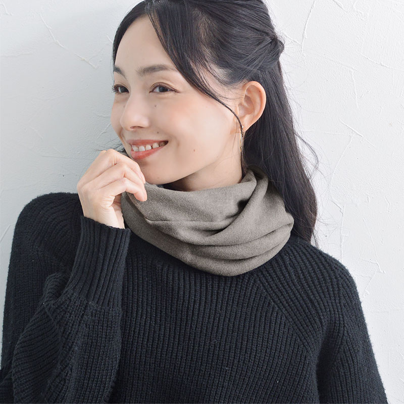 薄手ですがRENAR®という発熱素材を使うことで、着けているうちに首元がぽかぽか。ヒンヤリ冷えたお部屋の中でも、北風が吹く屋外でも暖かく感じられます。