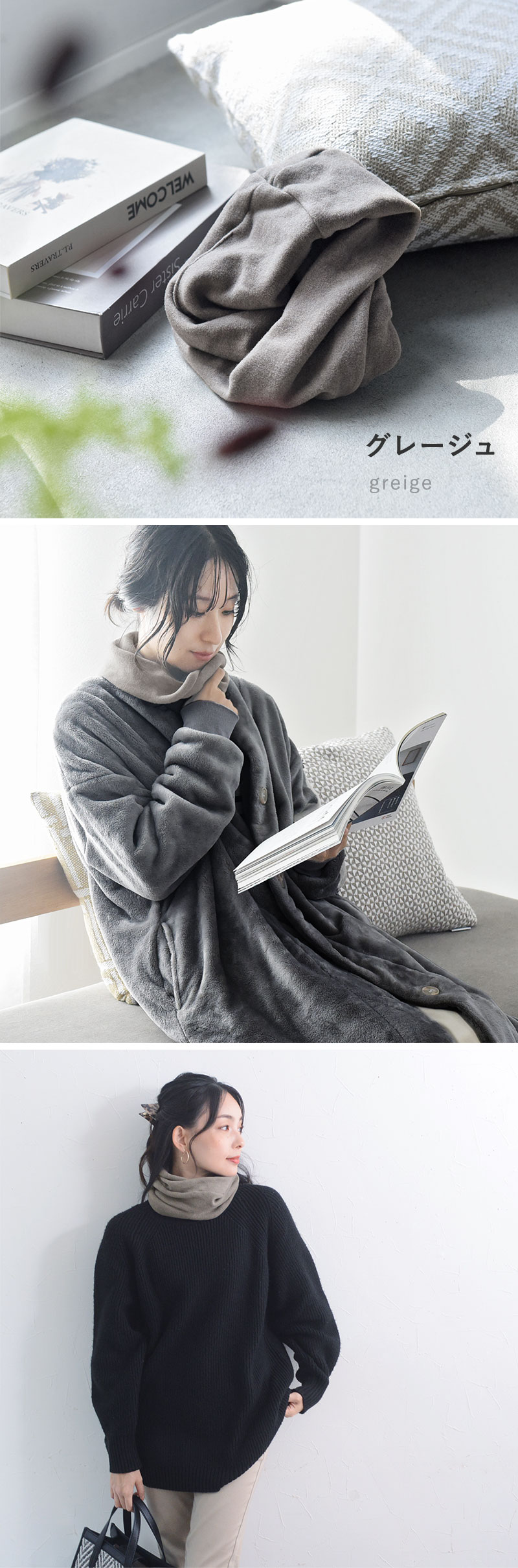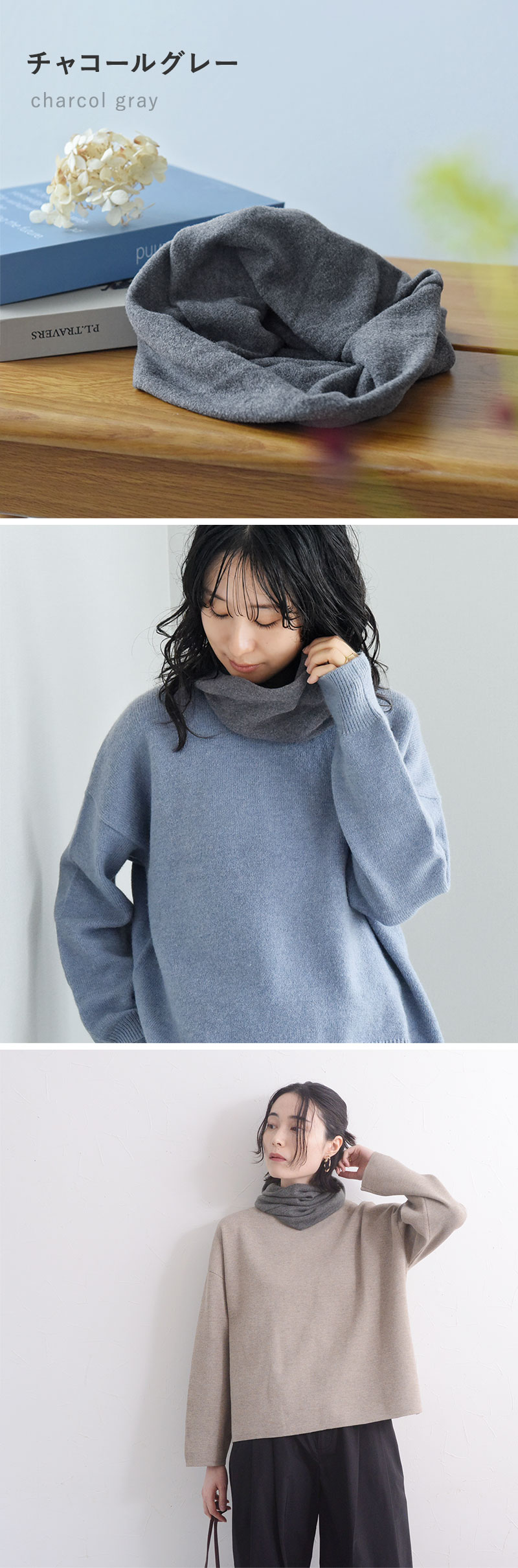 それならお部屋の中でもずっと身に着けていられる、「薄い」「軽い」「暖かい」ネックウォーマーを、と選んだのがこちら。