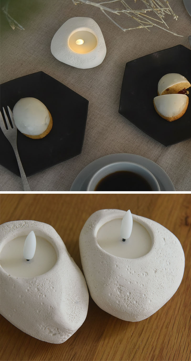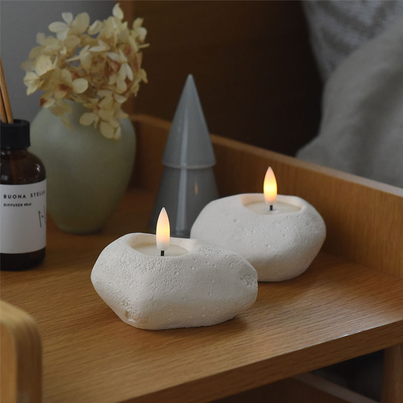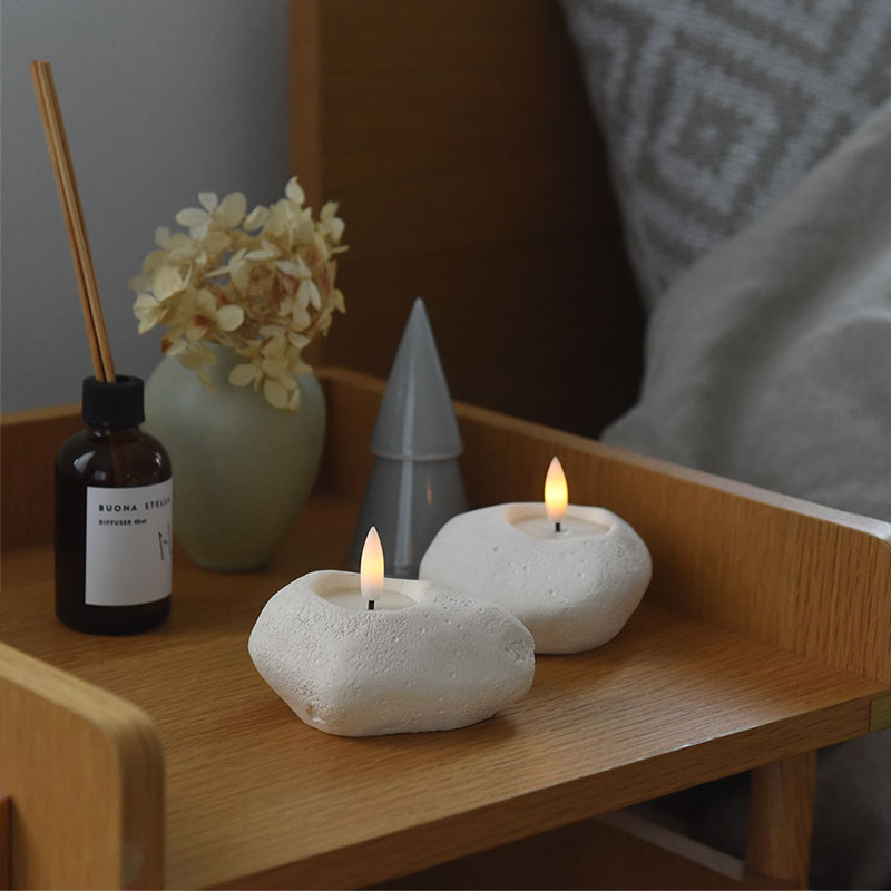 まるで本物の石のような質感を持つ、セメント製のLEDキャンドルライト「ストーンレット」。シンプルでありながら存在感のあるデザインでお部屋を飾ります。