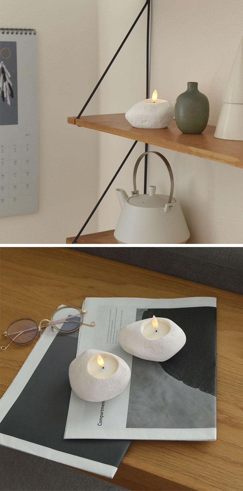 お気に入りの場所にぽんと置くだけで雰囲気を変えてくれるLEDキャンドル。自然の石を思わせるセメントの質感や、やわらかに灯る光がいつもの空間を穏やかにあたためてくれます。