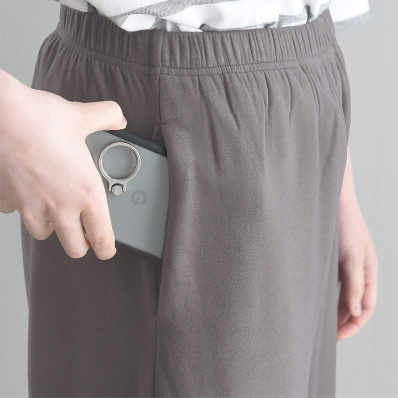 よ〜く伸びるからパジャマにももち〜っとよく伸びる素材なので、パジャマとしても◎。ごろんと寝転んだり、そのままストレッチも出来るほど楽ちんな穿き心地です。