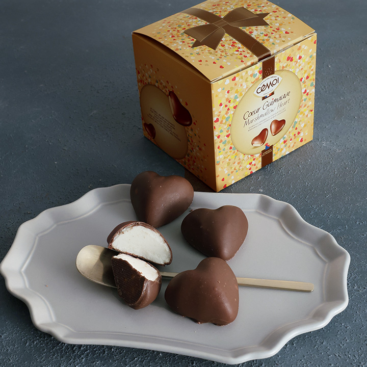 マシュマロをチョコレートで包んだ2層仕立てで、パリッとしたチョコとやさしくとろけるマシュマロ、2つの食感と味わいをお楽しみいただけます。