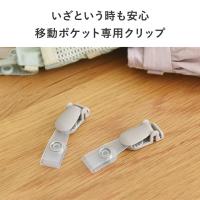 こちらは、その移動ポケットをお洋服に付けるときに使う“クリップ2個セット”です。万一、取れてなくなってしまった、壊れてしまったという時にお気に入りのポケットはそのまま、クリップだけ付け替えていただけます。