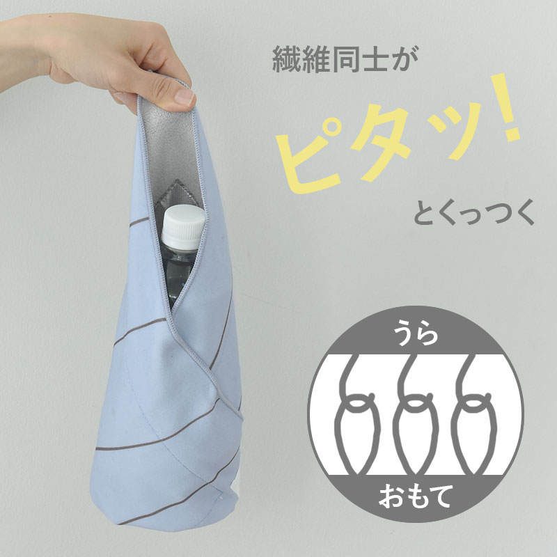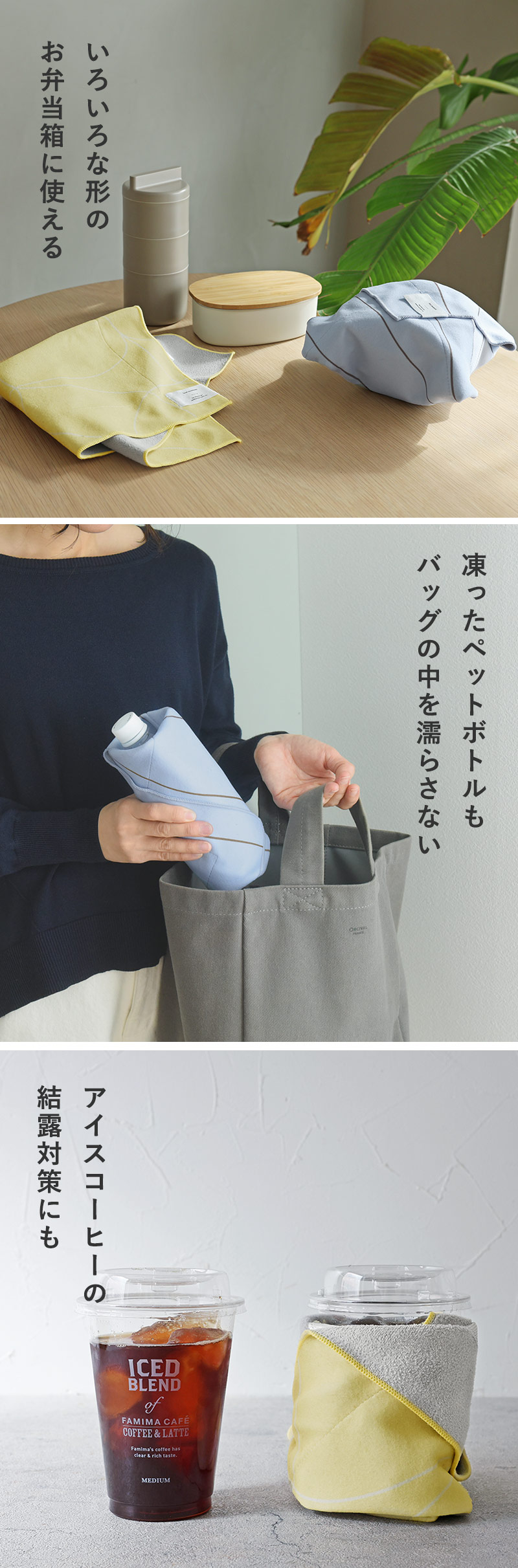 裏側が保冷・保温素材になっているから、くるんと包むだけで持ち歩きも安心。一年中活躍してくれます。