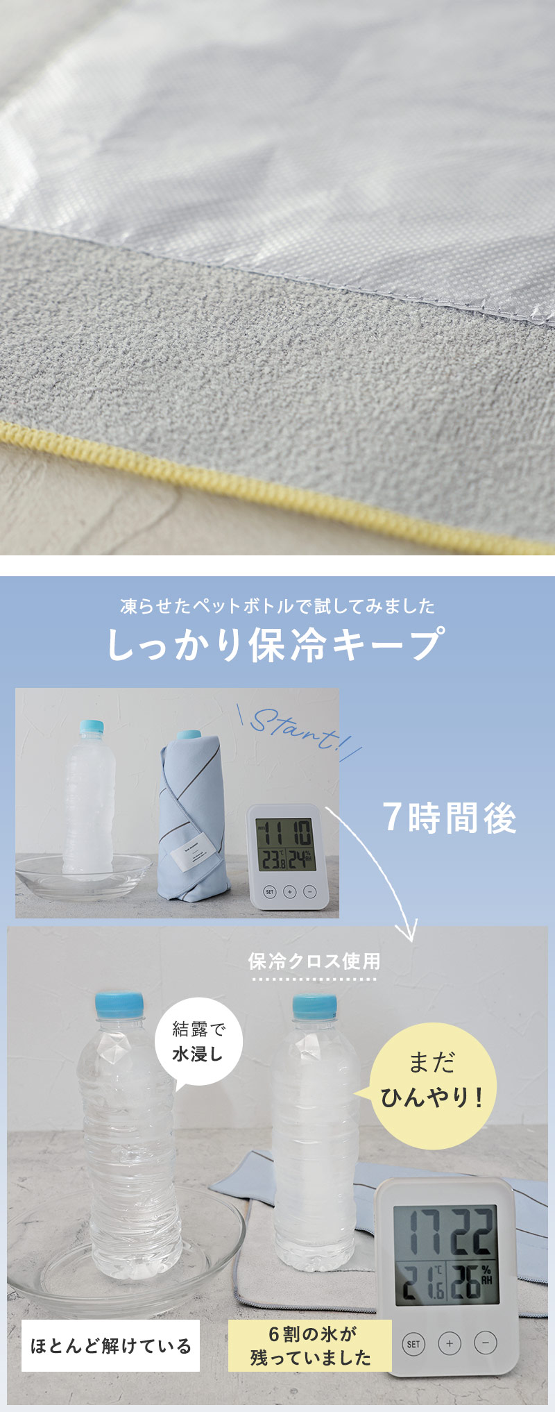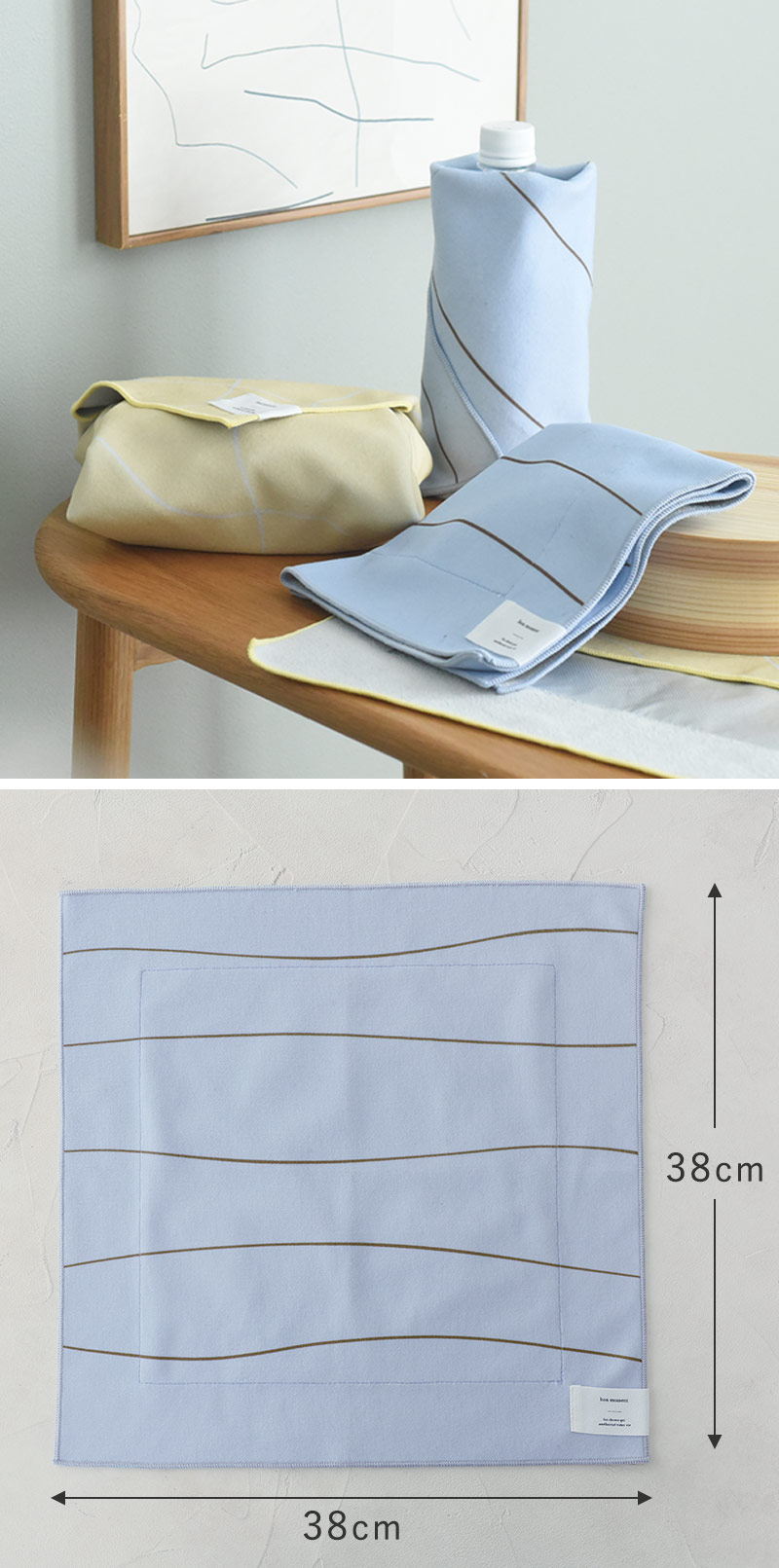お弁当だけではなく、ペットボトルやおにぎりなどを包むのにも便利なこちらのクロス。冷たいペットボトルを持ち歩くときに水滴をブロックしてくれる役割も。