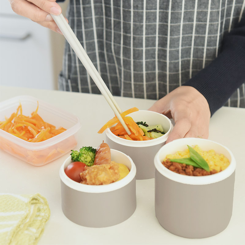 丁寧に盛り付ける時間がない、詰め方の正解が分からない、そんな時もこの3段弁当なら。夕飯の残りを1段ずつ詰めるだけでOK、盛り付けに悩むことなくお弁当が完成します。