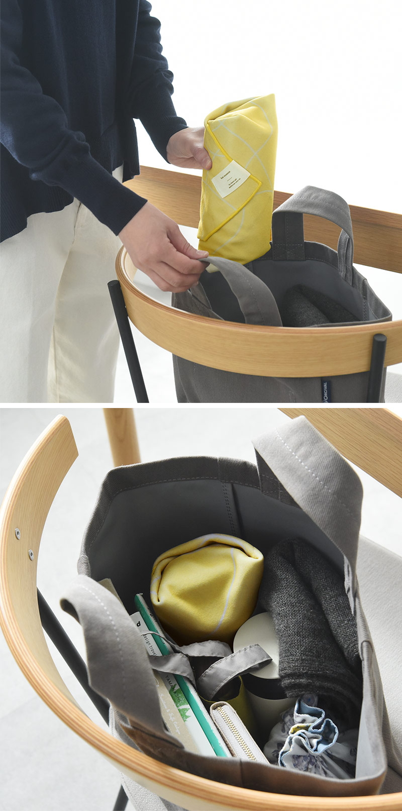 バッグの隙間にすぽっと入れられるので、場所をとらずに持ち歩けます。