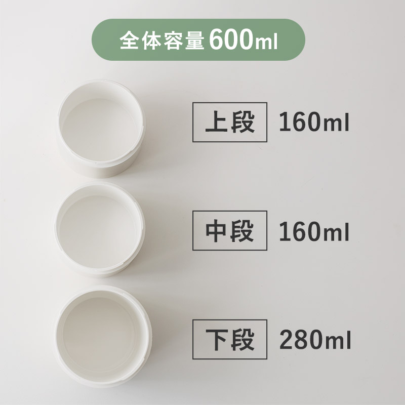 縦型スリムなお弁当箱ですが、こう見えて全体容量600mlとしっかりと入るサイズ感。