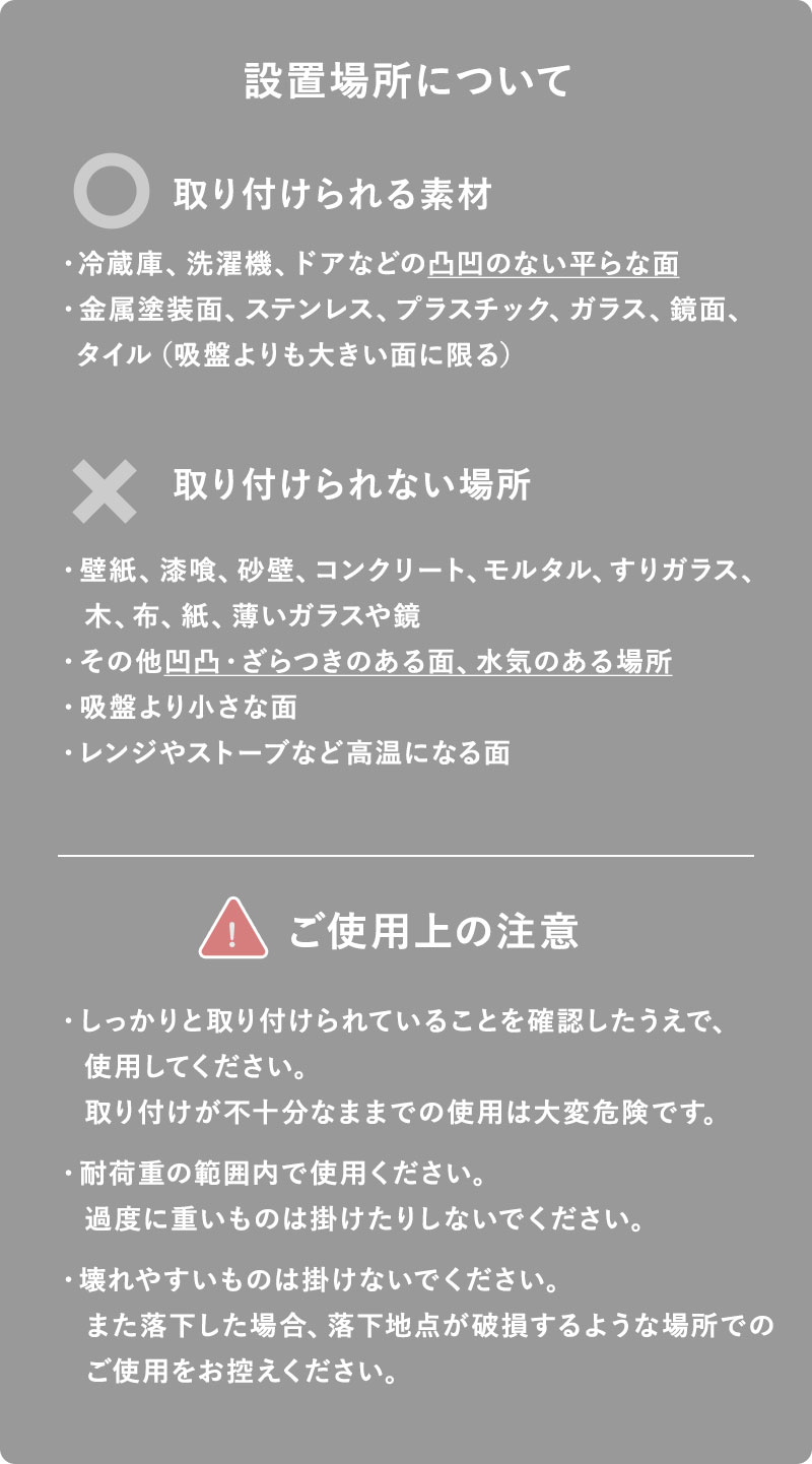 ※取り付ける面の材質や環境により、耐荷重が異なる場合があります。