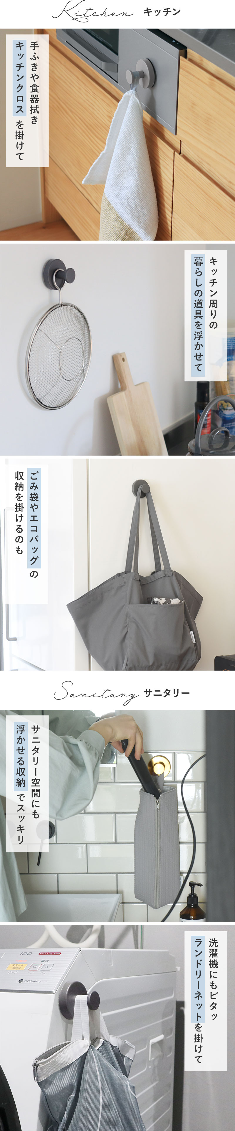 フックに掛けていたものが、しばらくするとズルズル〜っと落ちてくる、そんな経験ありませんか。強力だと思っていたマグネットや吸盤フックも重さに耐えきれずズリ落ちて、そのたびに直すのもストレスに。