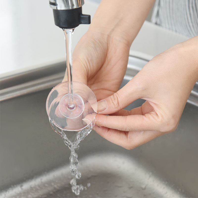 水洗いで何度でも使える吸盤は水洗いをすれば、繰り返し使うことができます。水洗い後は、よく乾燥させてから再度ご使用ください。