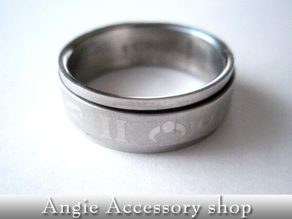 メンズ/レディース ステンレススピナーリング 象形文字デザイン マット加工