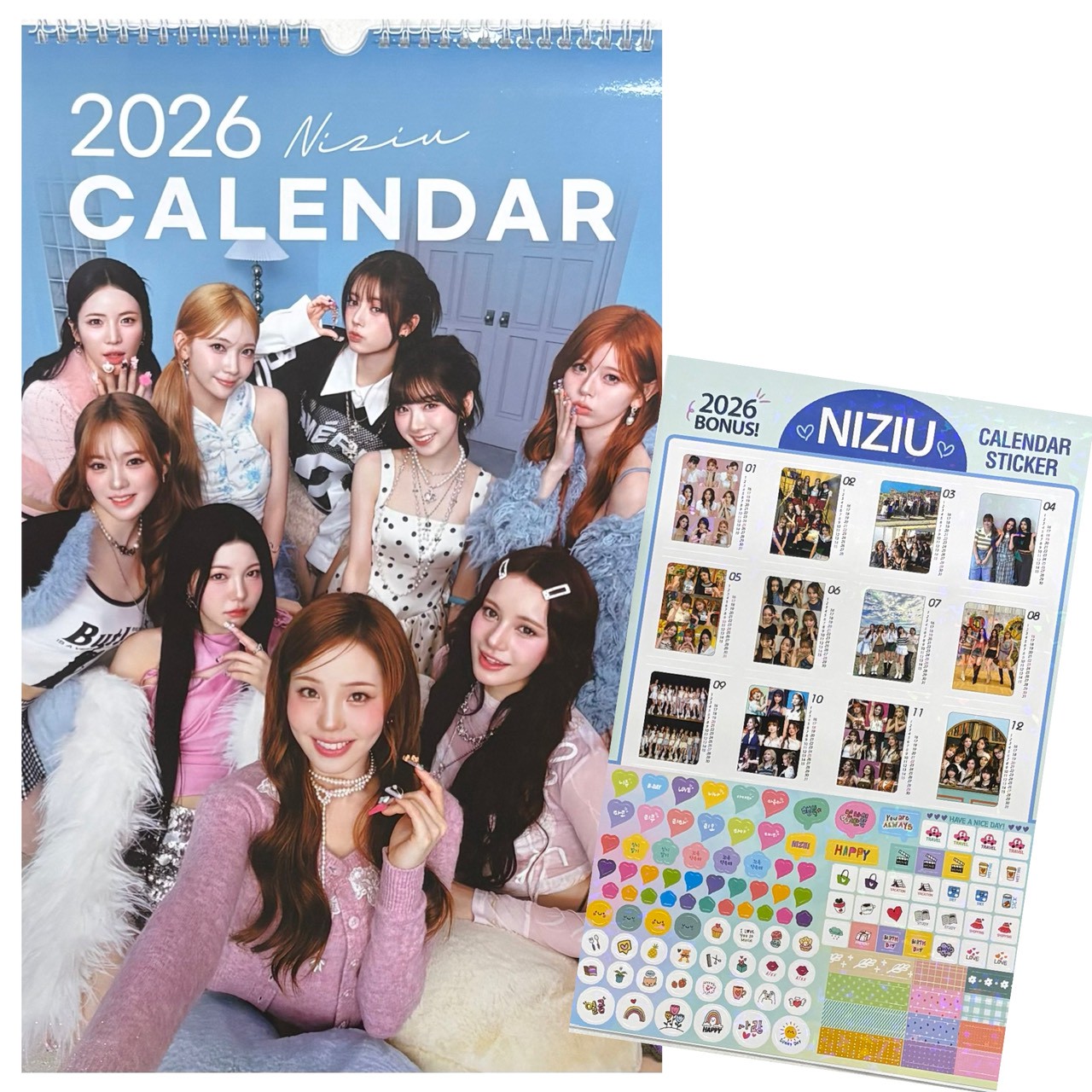 NiziU ニジュー 2026 壁掛け カレンダー ステッカー付 韓流 グッズ fx115-8