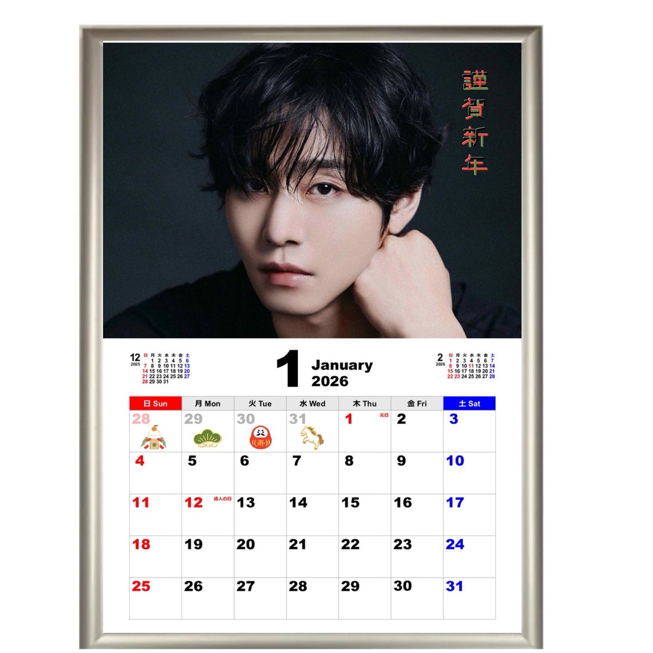 アンヒョソプ 2026 A4 フォトフレーム付き 壁掛け カレンダー 韓流 グッズ fx212-5