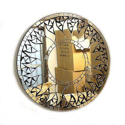 石膏にモザイクで燃える太陽を描いた壁掛けミラー。