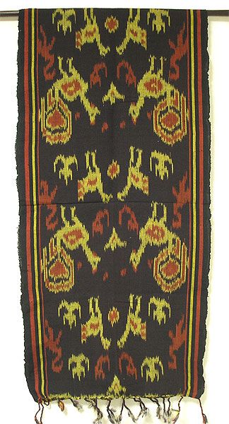 イカット Lサイズ テーブルセンター 小鳥 こげ茶・朱・黄 アジアン雑貨 バリ雑貨 モダン おしゃれなタペストリー