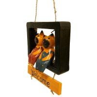 Welcomeプレート ウェルカム バリネコカップル 黒 アジアン雑貨 バリ雑貨