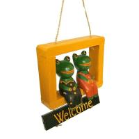 Welcomeプレート ウェルカム カエルカップル ベージュ アジアン雑貨 バリ雑貨