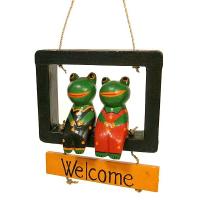 Welcomeプレート ウェルカム カエルカップル 黒 アジアン雑貨 バリ雑貨